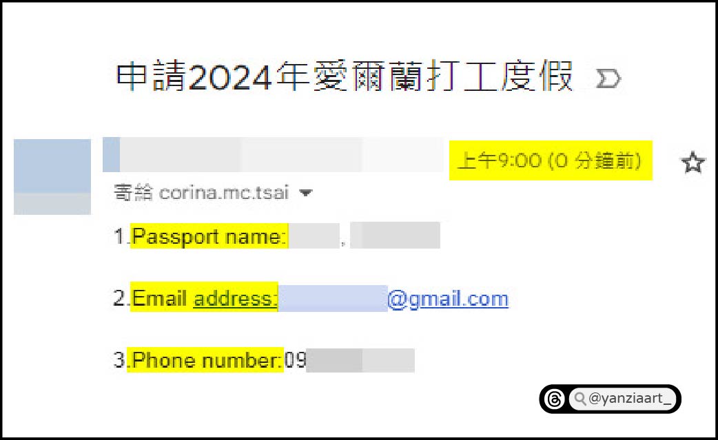 - email主旨:申請2026年愛爾蘭打工度假