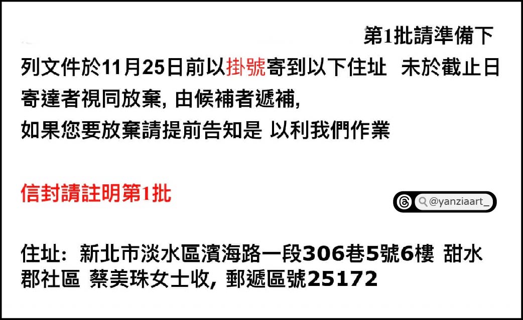信封請註明是第幾批。