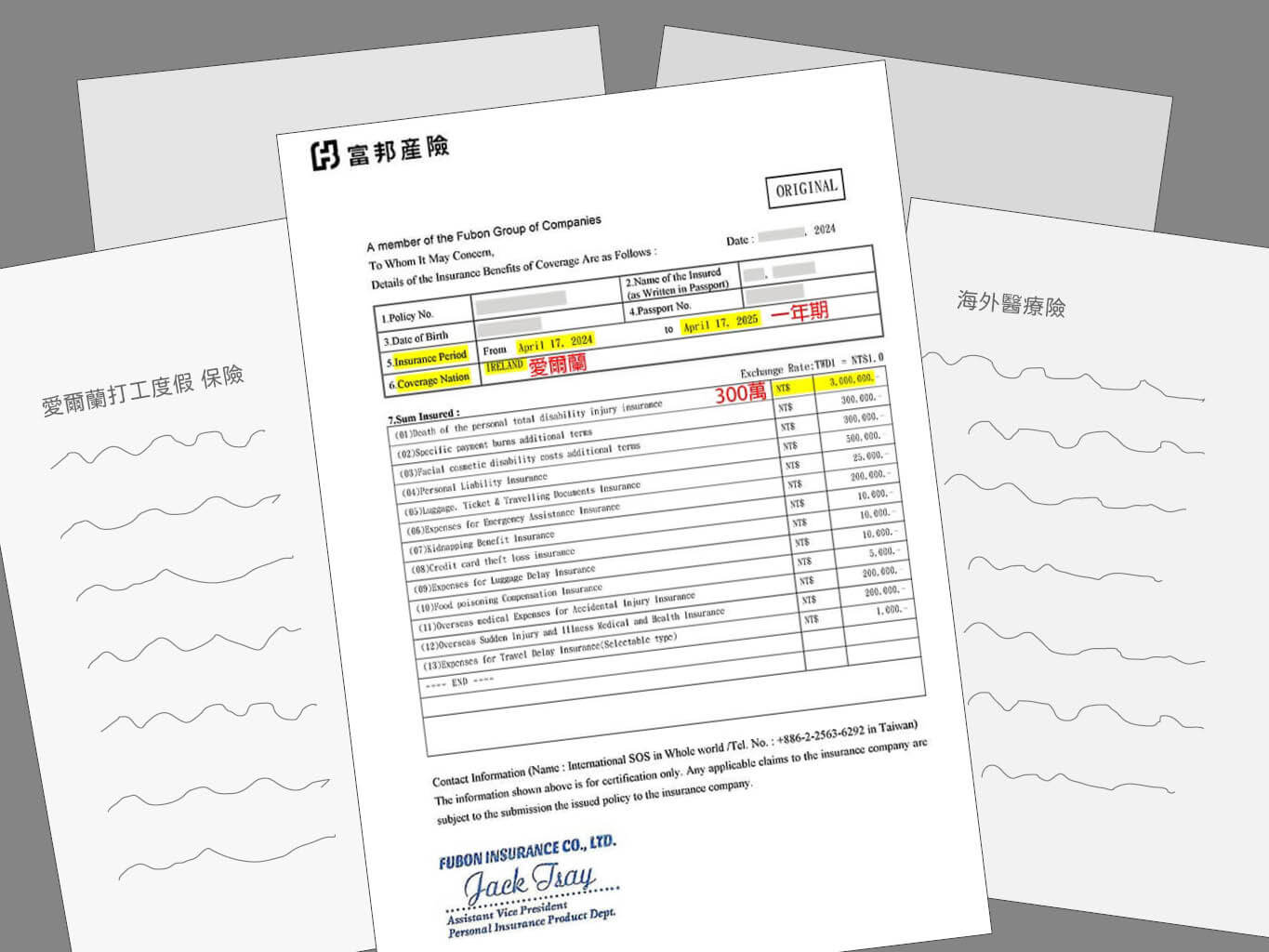 如果有申請愛爾蘭打工度假的朋友都知道,簽證裡有一個規定是需要保保險! 在領取愛爾蘭打工度假簽證時需要提供投保證明;另外到愛爾蘭當地超過90天,需要申請IRP時也需要提供醫療險的保單證明…